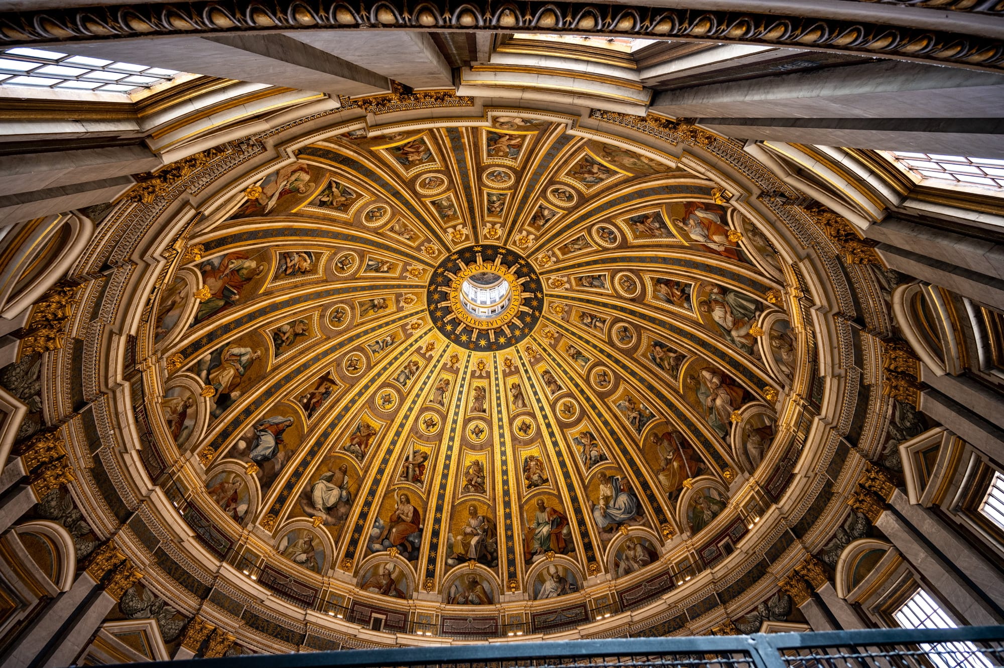 圣彼得大教堂的穹顶是文艺复兴时期建筑的杰作,由米开朗基罗(Michelangelo Buonarroti)设计,于1547年动工并在后继建筑师的努力下完成。这座穹顶是世界上最大之一,高度达136.57米。穹顶内的天窗洒下自然光线,营造出神圣氛围,为教堂增添了庄严与美感。