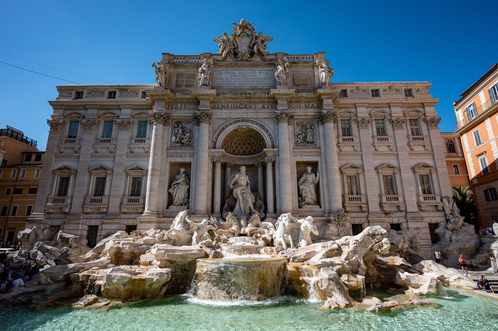 特雷维喷泉(Fontana di Trevi)是罗马最著名的喷泉,由尼古拉·萨尔维(Nicola Salvi)设计,完工于1762年。喷泉以罗马海神尼普顿的雕像为中心,周围环绕着象征丰收与健康的雕塑。游客投掷硬币以祈愿返回罗马,成为一项广受欢迎的传统。